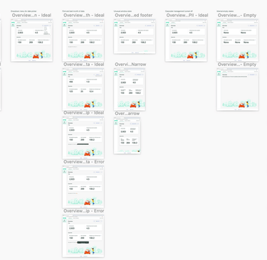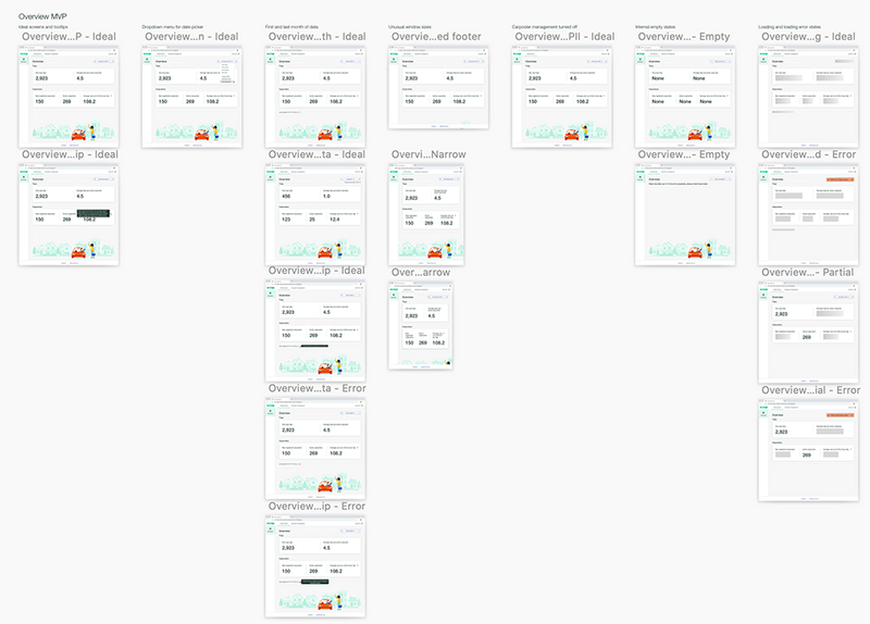 For every screen we prepared up to seven types of states: Ideal, Empty, Partial, Loading, Error, Success, and Responsive break points. Sometimes there was more than one of each type of state, and sometimes we didn't need every one of these states for a screen, but we considered these states for each screen.