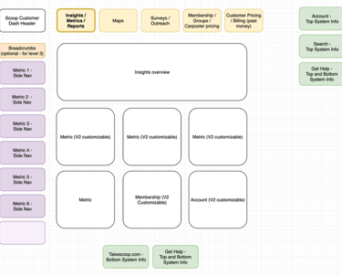 Before I started working on designs, our UX researcher interviewed contacts at eleven of our existing customers to understand what they would need and expect from a Scoop reporting dashboard, both immediately and long term. She identified 19 themes for needs that customers had including visibility into program usage, tools for program expansion, and blocking former employees from using the service.