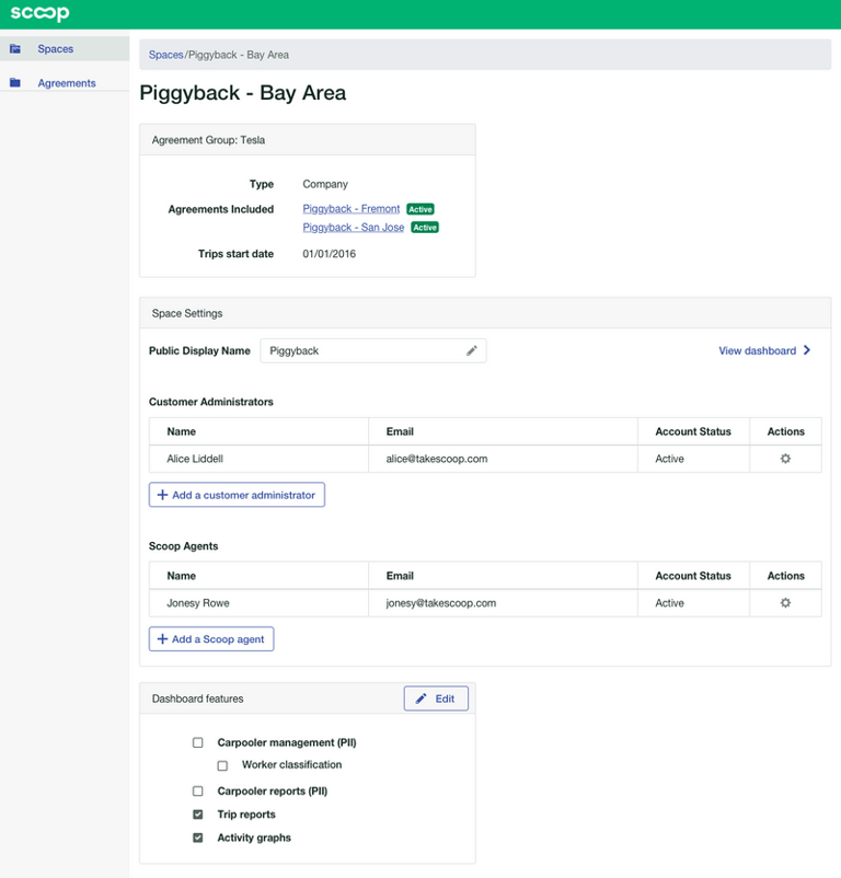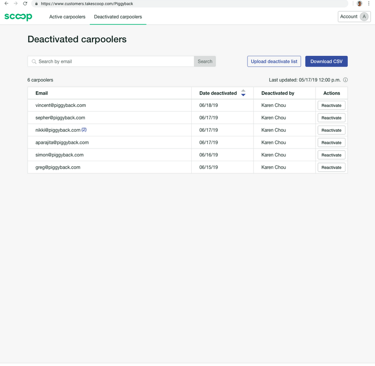 Give customer administrators visibility into which of their employees are utilizing carpooling benefits and remove program access for former employees.