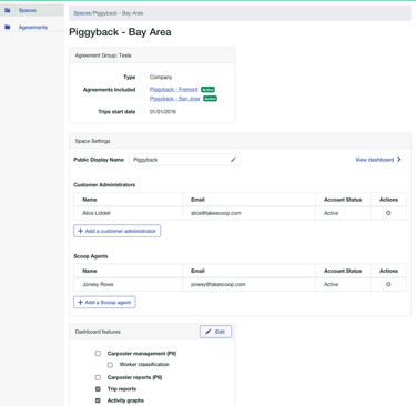 1. Provide customers with visibility into their employee's usage of their transportation program and enable them to substantiate their Scoop invoice.